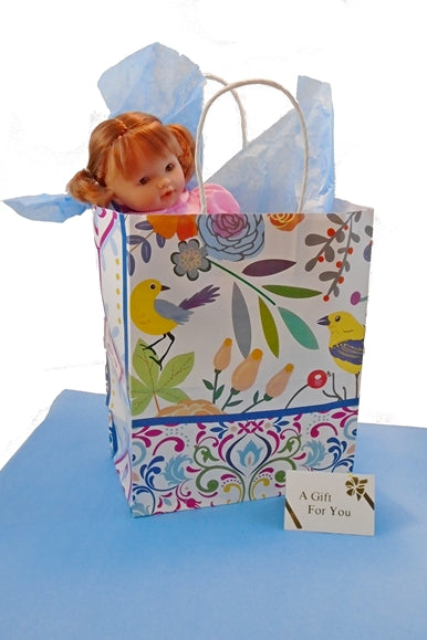 We've spent the last 15 years refining and perfecting the art of gift wrapping dolls. And although not every doll we sell lends themselves to gift wrap, most do - even the soft cloth and floppy dolls - we can send you gift bags with those.